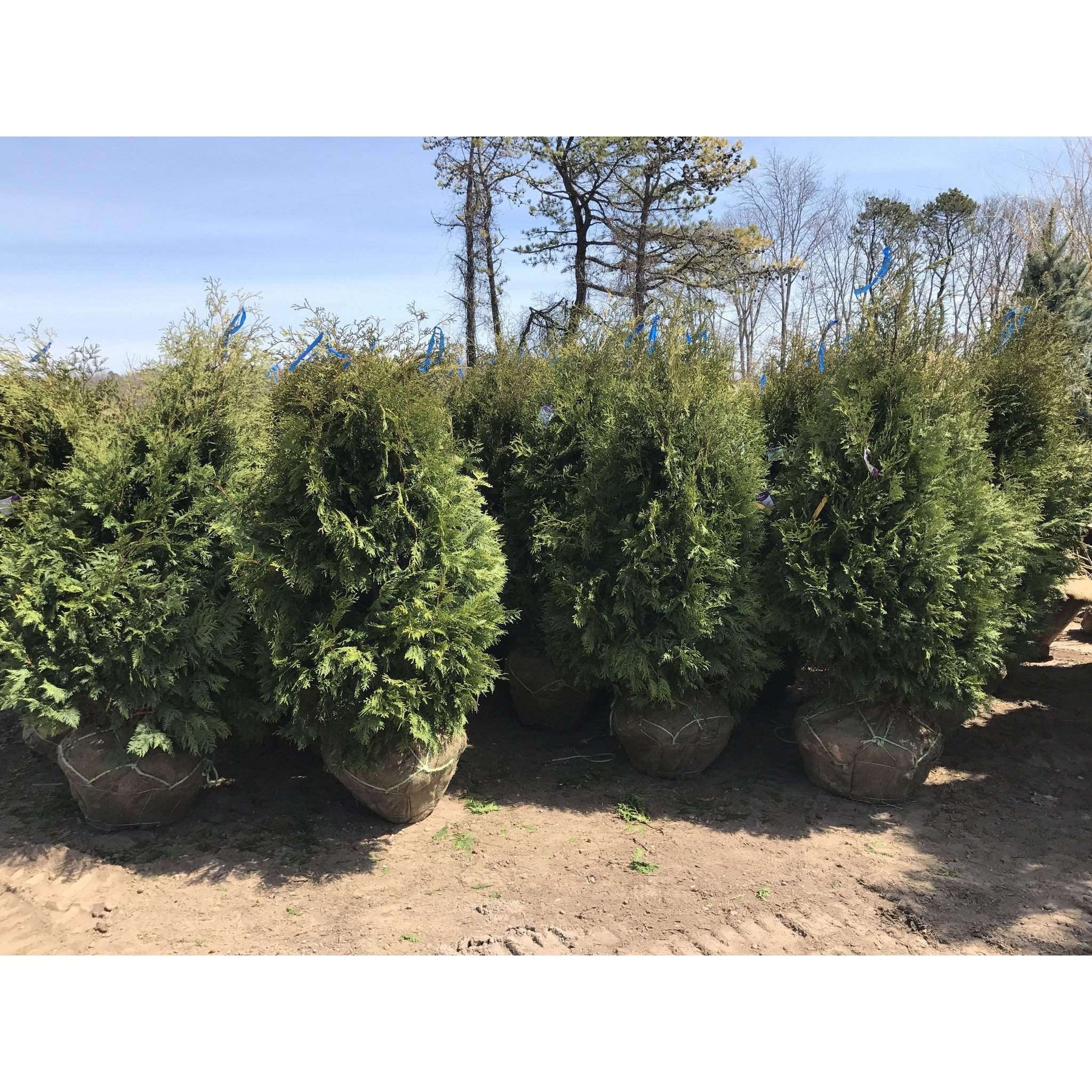 Thuja 'Nigra', or Dark American Arborvitae, are a beautiful, dark-green evergreen that is a moderately-fast, upright grower. Dark American Arborvitae are great screening plants that perform well in a hedge due to their upright growth habit. This plant is very cold-hardy and can handle part-shade conditions. Thuja Nigra has been widely used as a privacy tree throughout Long Island & the Northeast due to it's reliability and neat growth habit.